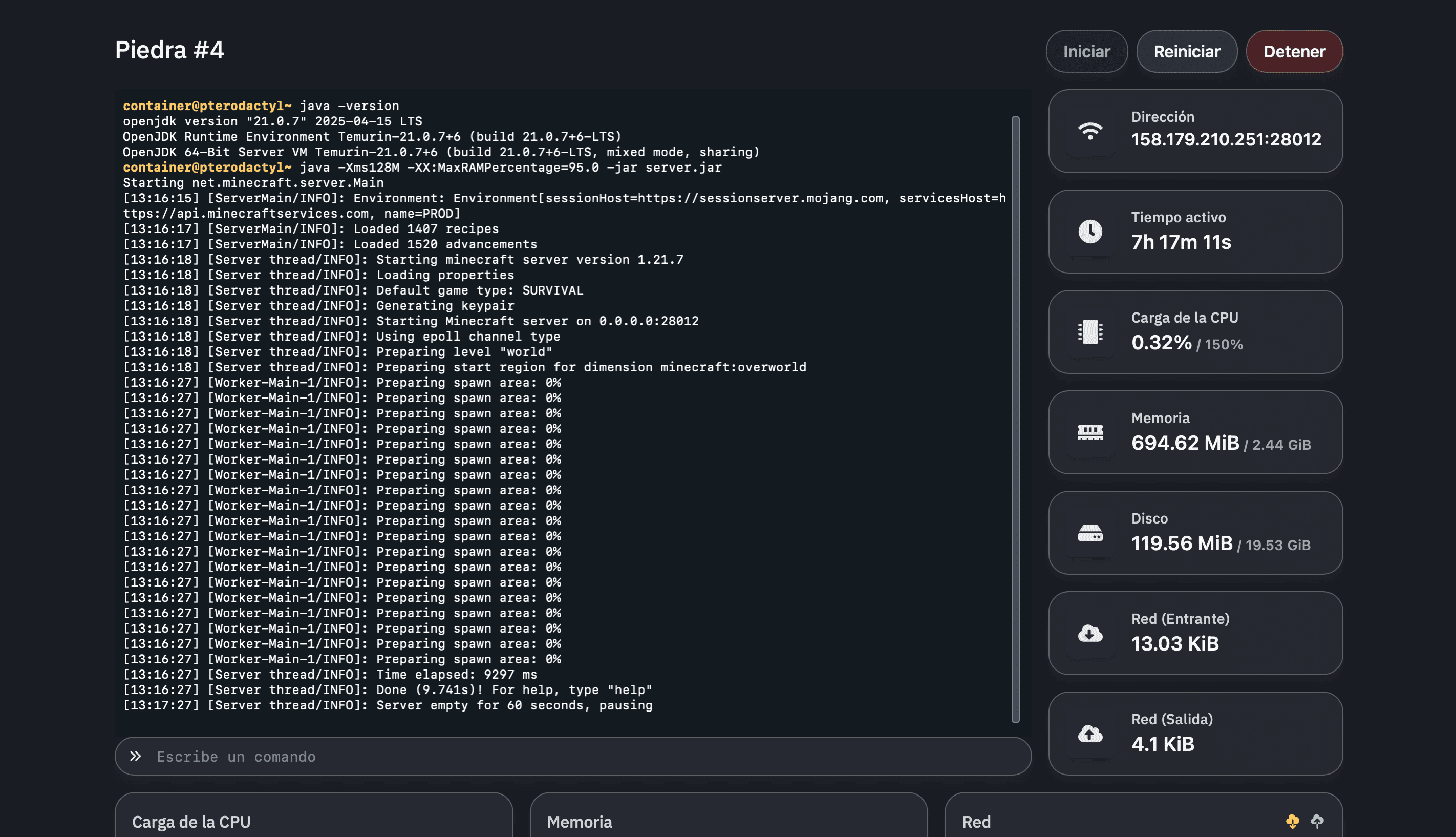 Administra tu servidor en tiempo real con un panel intuitivo, rápido y lleno de herramientas. Consulta registros, ejecuta comandos y supervisa el rendimiento de tu servidor sin complicaciones.